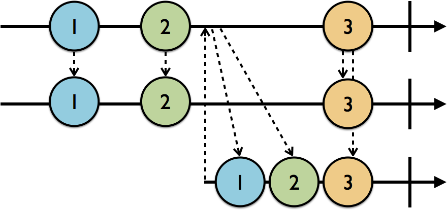 두 번째 구독자는 subject가 두 개의 이벤트를 받은 후 구독하였지만 버퍼 사이즈 2만큼의 값을 받을 수 있습니다.