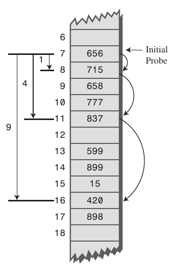 초기 해시값이 같으면 다음 탐사 위치 또한 동일하므로 효율성이 떨어집니다.